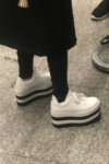Lali régebben mindig lapossarkú cipőket hordott, főleg tornacipőket,mostanában viszont inkább a magasított sarkú, illetve talpú cipőket viseli.Ebben szerepet játszik Lali alacsony magassága is. A Casi angelesben nagyon jellegzetes magasított talpú cipőt hordott mindig,amit piacra is dobtak Argentínában Casi angeles felirattal.Nyáron kedveli a lábujjas papucsokat is. Az énekesnő egyébként nagy cipő rajongó, emiatt rengeteg van neki belőle. Saját bevallása szerint a kollekciója száznál is több darabból áll.