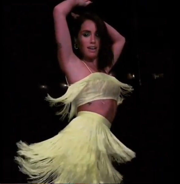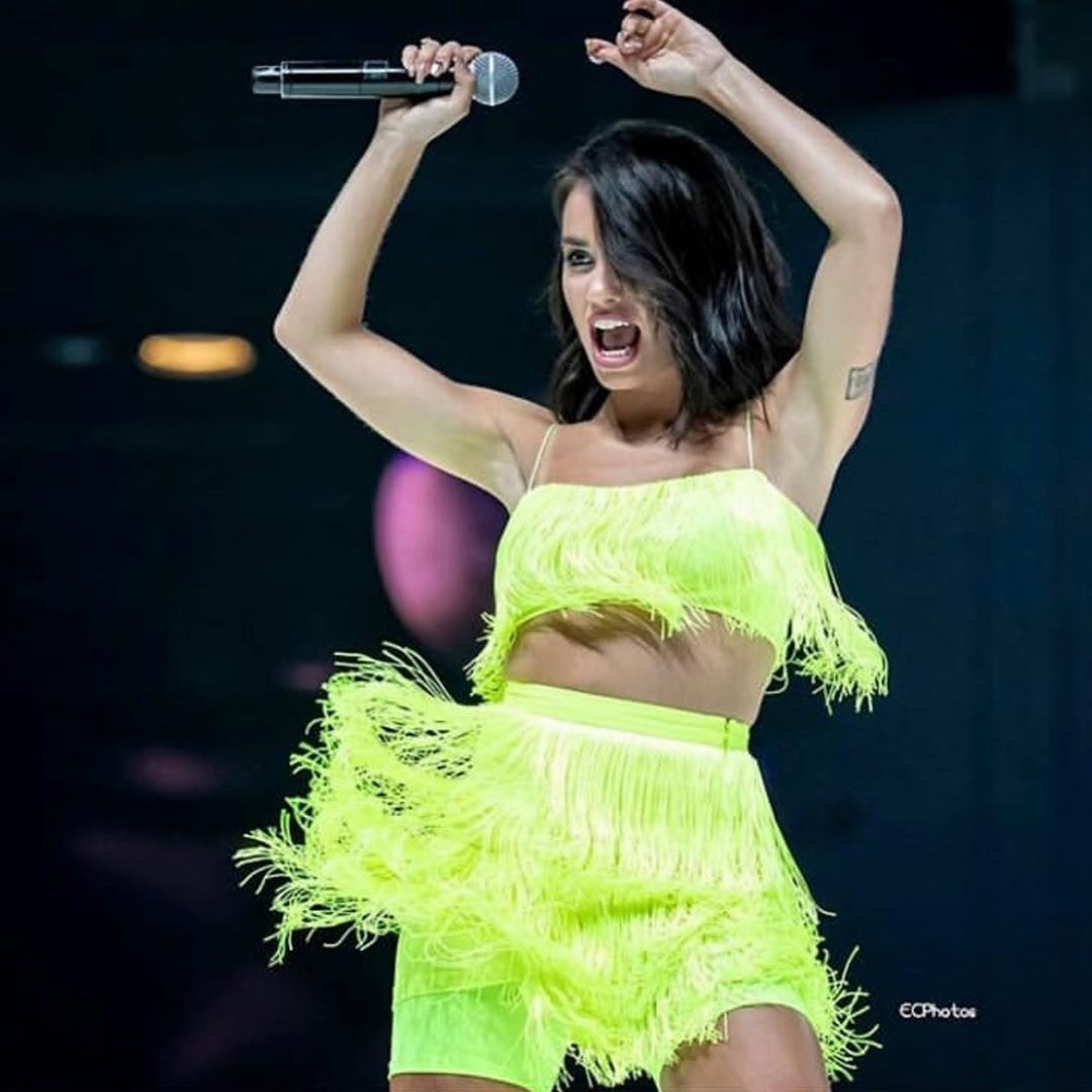 A színpadi megjelenése sokkal feltűnőbb lett. Az argentin díva egy neon kompozíciót választott: szoknyát és felsőt. Mindkét ruhadarabot számos rojt borította, így tánc közben csodásan mozogtak rajta.